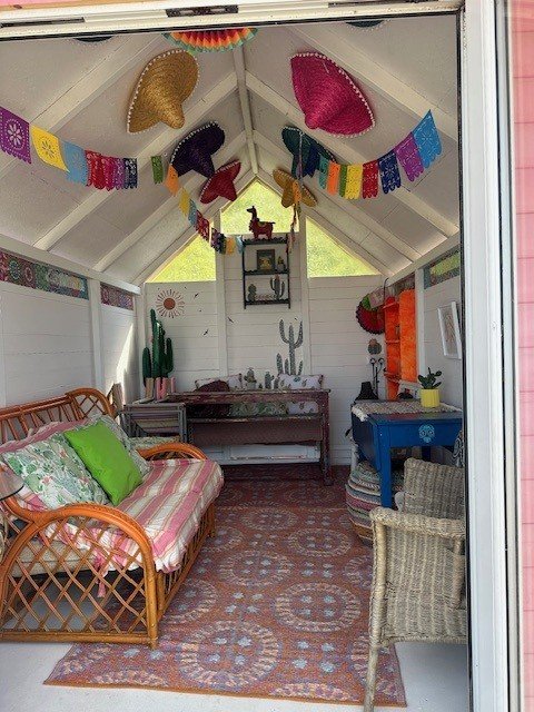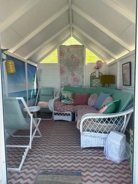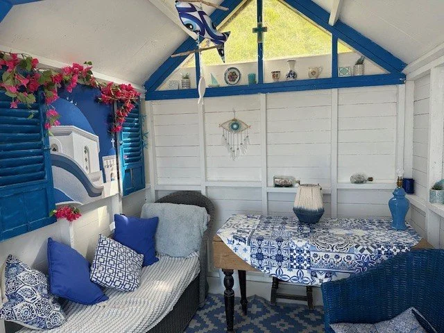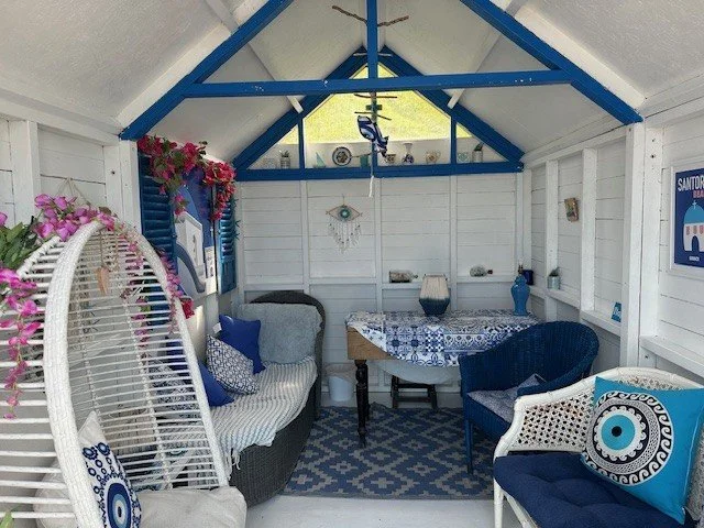 Our Greek hut hopes to transport you from The Isle of Man to one of the Greek Islands. Whether you are a Shirley Valentine wanting to come and hide out with a book, or a group that love Mama Mia, this hut has something for everyone. Lots of Greek decor, and a lovely comfy egg chair and a day lounger for that afternoon nap.