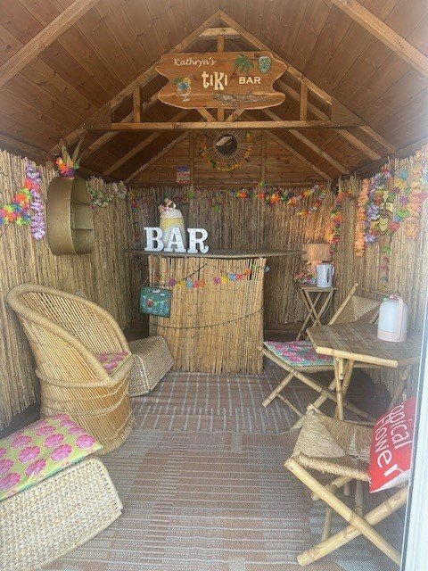 Your very own Hawaiian Tiki bar! This hut has a bar with bar stools and lots of choice of small wicker chairs to relax in with your cocktail. 🌺🌸. All you have to bring is your own cocktails and glasses etc. Don’t forget to bring your Hawaiian Leis to get everyone in the mood.
